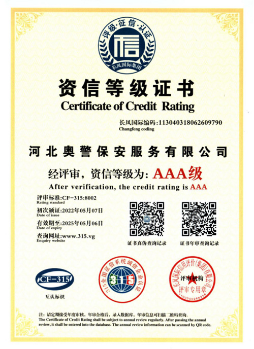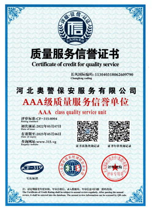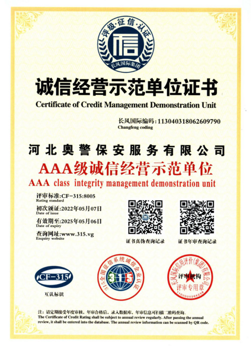 奧警邯鄲保安公司是一家民營保安服務公司,工商行政管理局登記注冊,獲取相關等級資質(zhì)證書,是一家大型的保安連鎖服務公司。